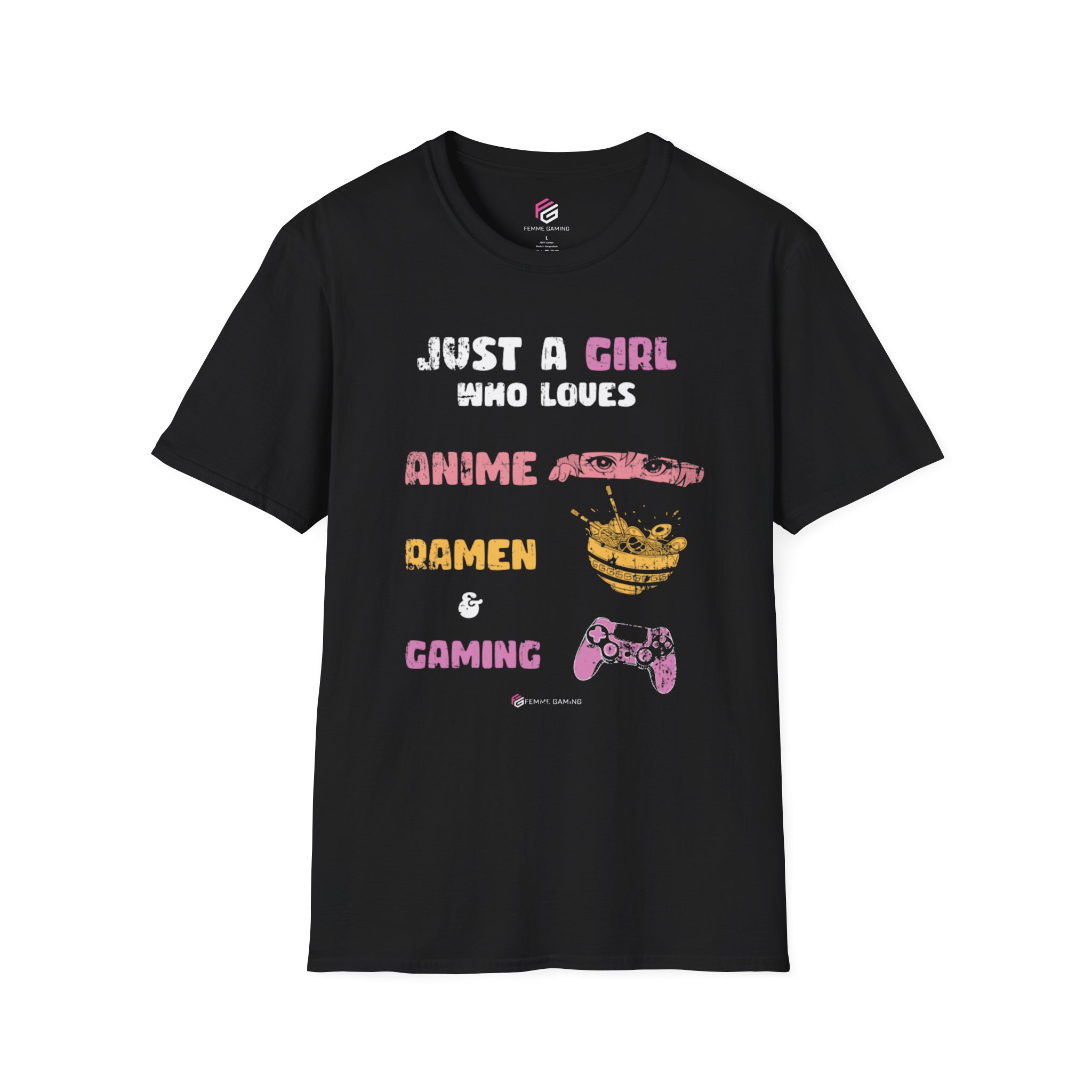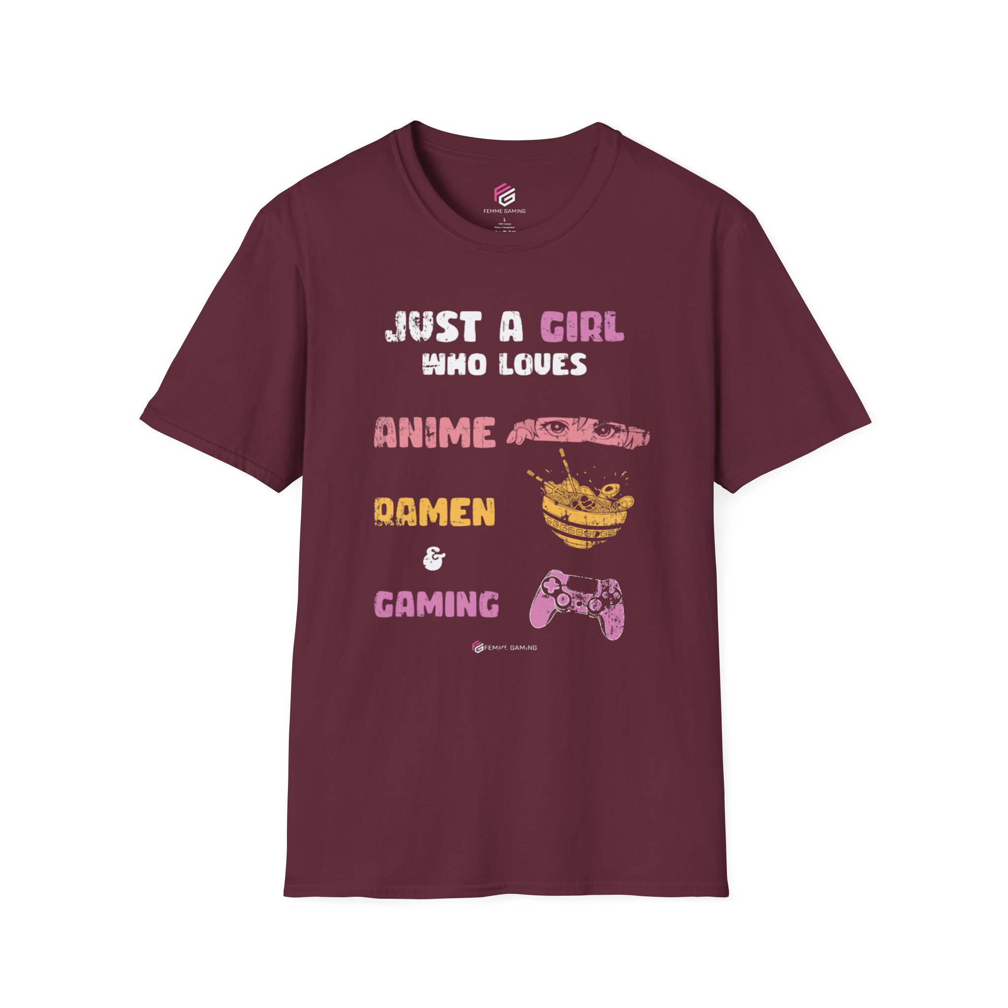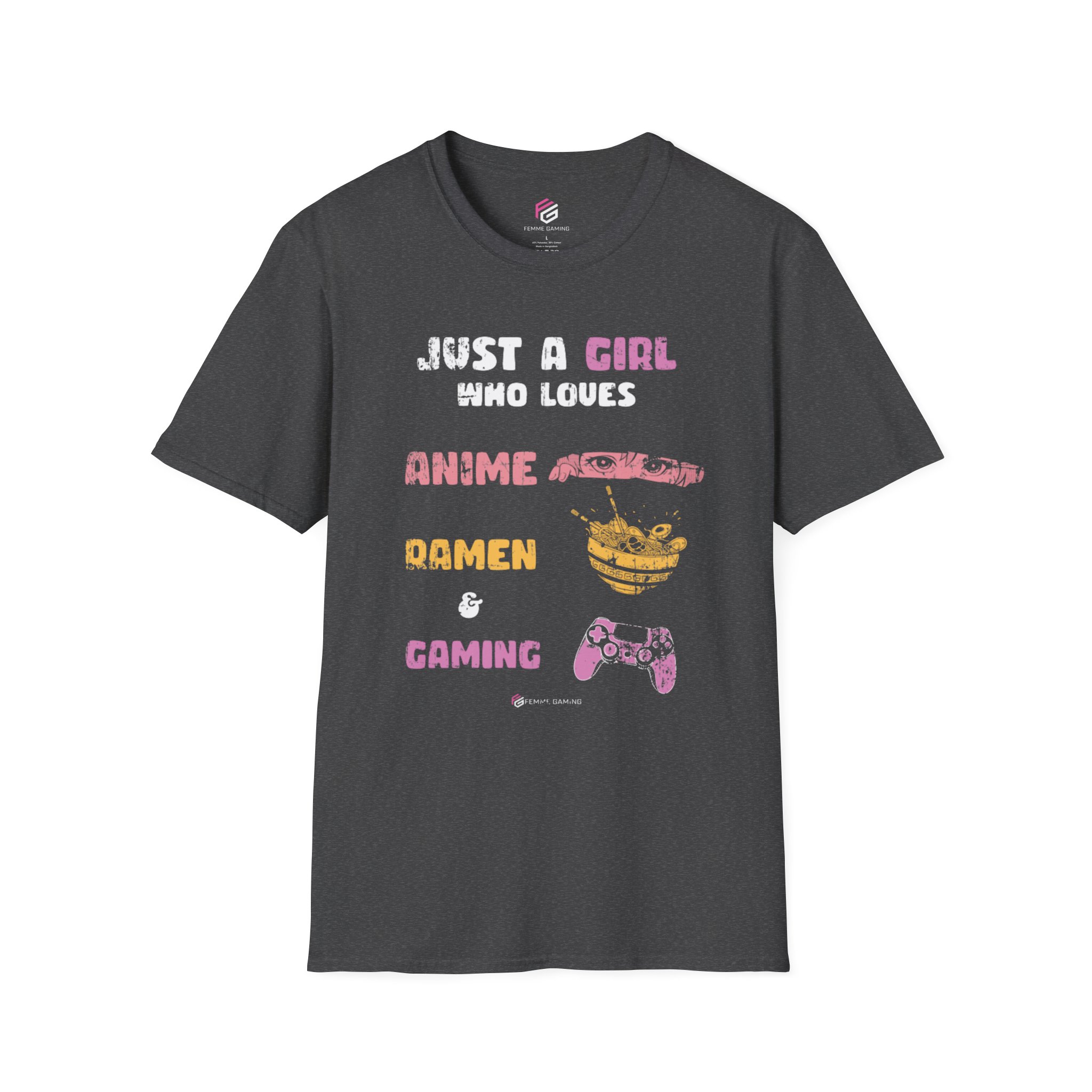 This unisex T-shirt is perfect for girls who love anime, ramen, and gaming. Made from durable and smooth fabric, it is lightweight and comfortable to wear all year round. The classic fit and crew neckline make it versatile for any occasion, from formal to semi-formal. Ideal for adults who are fans of anime and gaming.